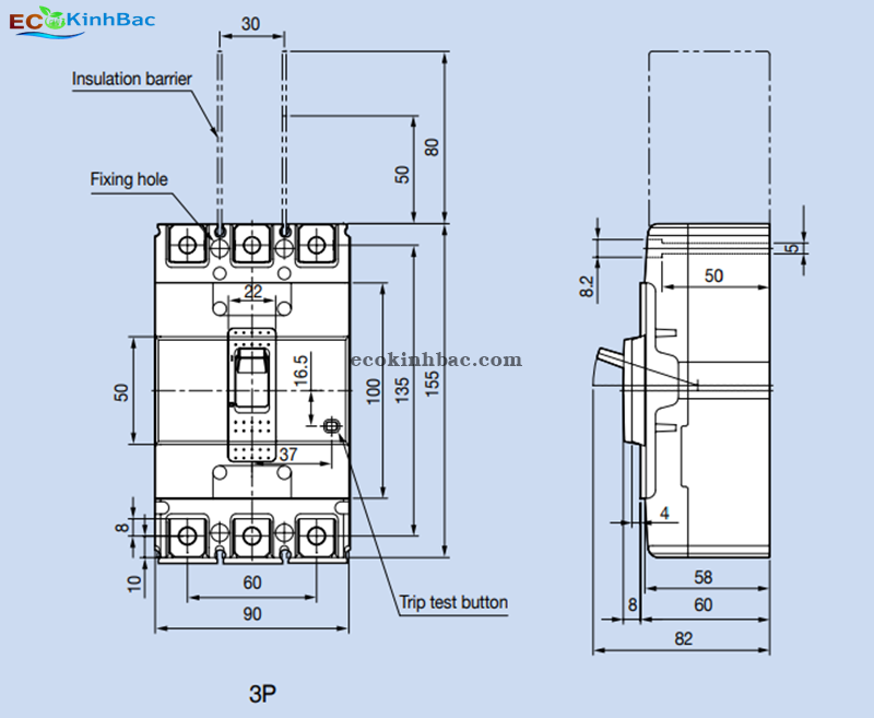Kích thước Aptomat LS ABS103c 100A: