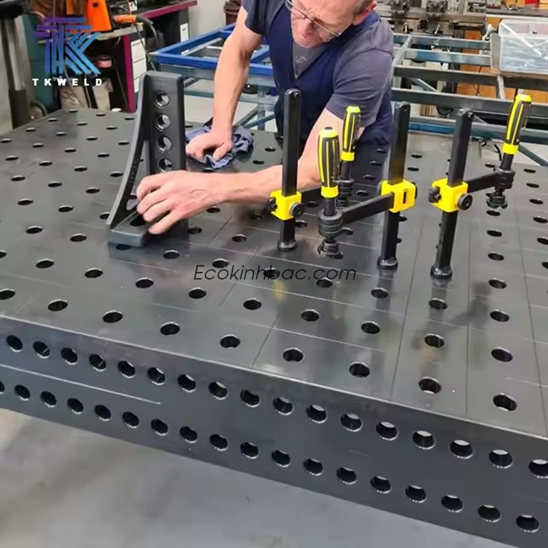 - Tối ưu hóa không gian làm việc: Kích thước lớn 3000x2000 mm cho phép bạn gá lắp nhiều chi tiết cùng lúc hoặc làm việc với các sản phẩm, kết cấu có kích thước lớn. Điều này giúp rút ngắn thời gian lắp ráp, hàn và kiểm tra, từ đó tăng đáng kể năng suất tổng thể.