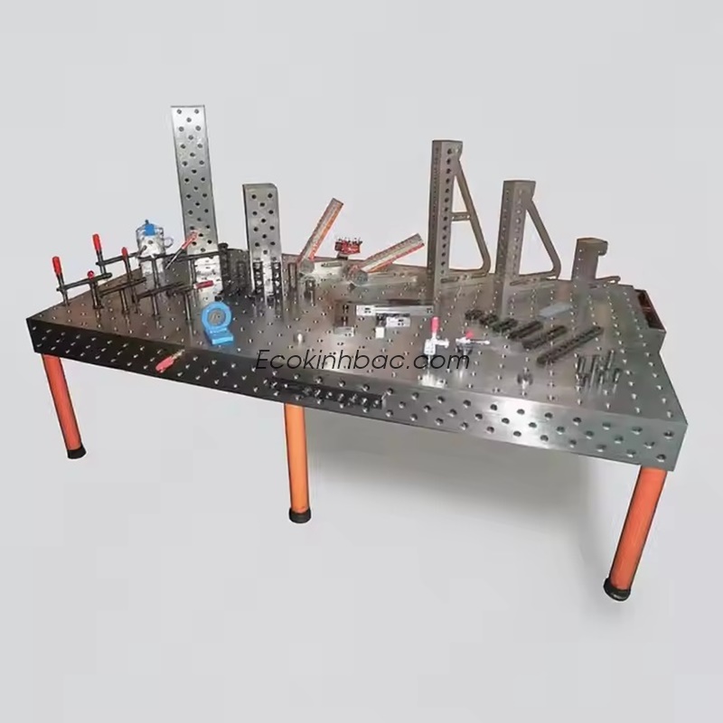 Bàn có lỗ chuẩn và rãnh để cố định chi tiết.