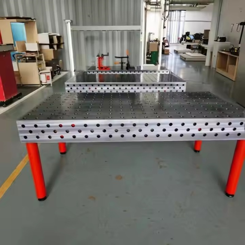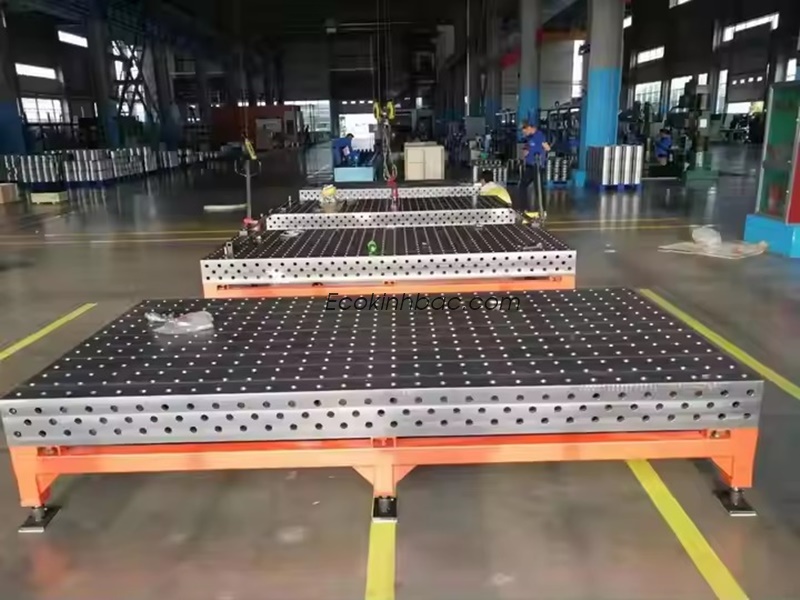 Bàn có lỗ chuẩn và rãnh để cố định chi tiết.