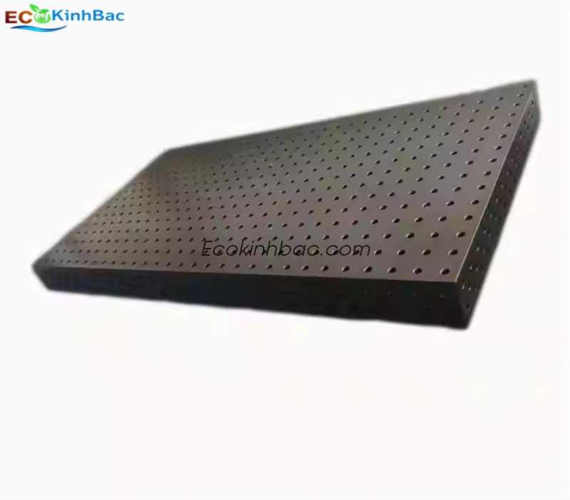 Đây có thể là bàn gá hàn 3D (3D welding table) bằng gang hoặc thép đúc — là loại bàn dùng trong gia công kim loại, đặc biệt phổ biến trong các xưởng hàn hoặc chế tạo cơ khí chính xác.