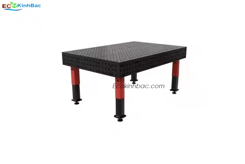 Đây có thể là bàn gá hàn 3D (3D welding table) bằng gang hoặc thép đúc — là loại bàn dùng trong gia công kim loại, đặc biệt phổ biến trong các xưởng hàn hoặc chế tạo cơ khí chính xác.