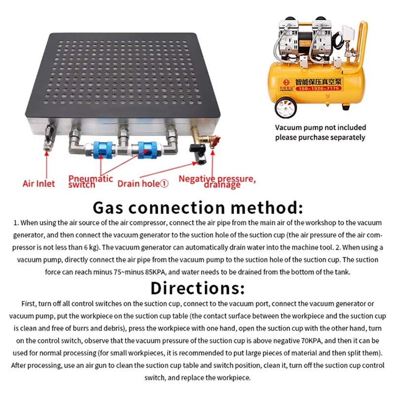 5. Vị trí phôi có thể được đặt tùy ý, nó có thể được hấp phụ khi bật công tắc và các lỗ không sử dụng có thể tự động đóng lại.