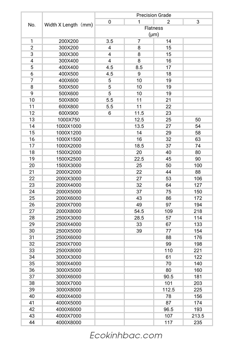 Có độ phẳng cao (theo cấp chính xác 00, 0, 1... tùy yêu cầu).
