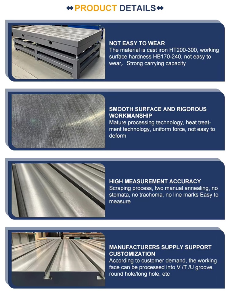 Ứng dụng chịu tải lớn: Gang đúc với rãnh T-slot thường dùng cho nền tảng lắp ráp, thử nghiệm lớn.