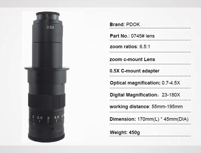 Độ phóng đại vật kính: 0.7X–4.5X (tương đương 10X–180X trên màn hình)