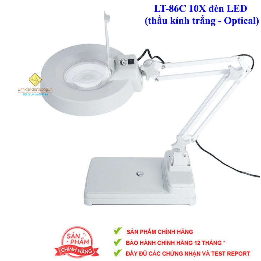 Đặt kính lúp ở vị trí ổn định trên bàn làm việc. Model LT-86C là loại kính lúp để bàn, thân gập với cổ xoay và khớp linh hoạt.