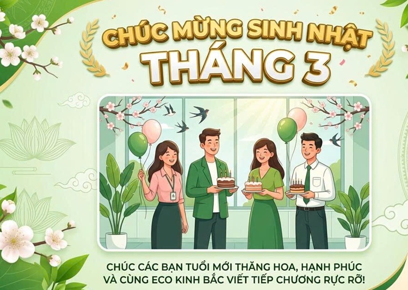 Tháng 3 về mang theo sự tươi mới của mùa xuân và cũng là dịp đặc biệt để chúng ta cùng chúc mừng ngày sinh nhật của các thành viên trong đại gia đình Eco Kinh Bắc.