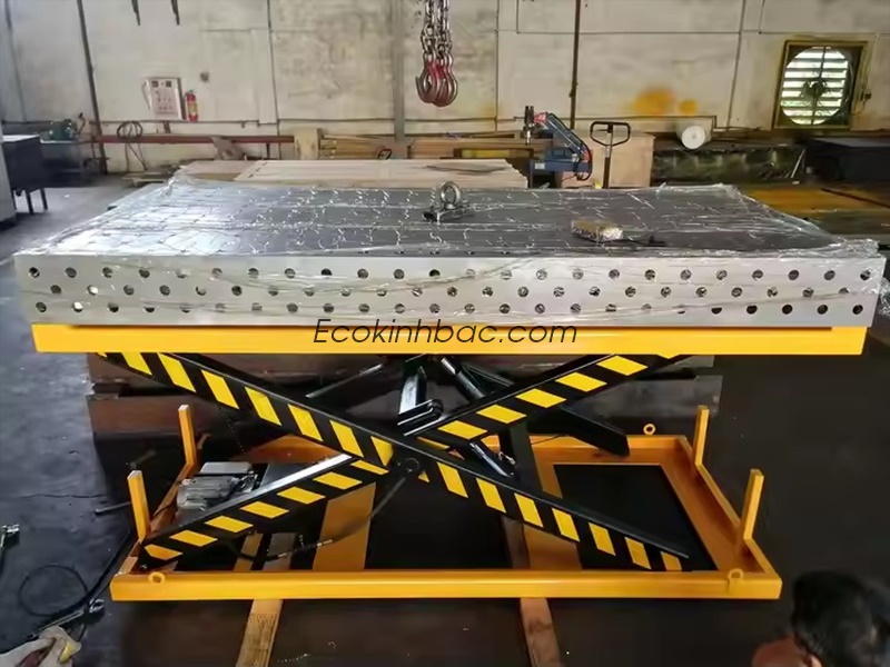 Đây có thể là bàn gá hàn 3D (3D welding table) bằng gang hoặc thép đúc — là loại bàn dùng trong gia công kim loại, đặc biệt phổ biến trong các xưởng hàn hoặc chế tạo cơ khí chính xác.