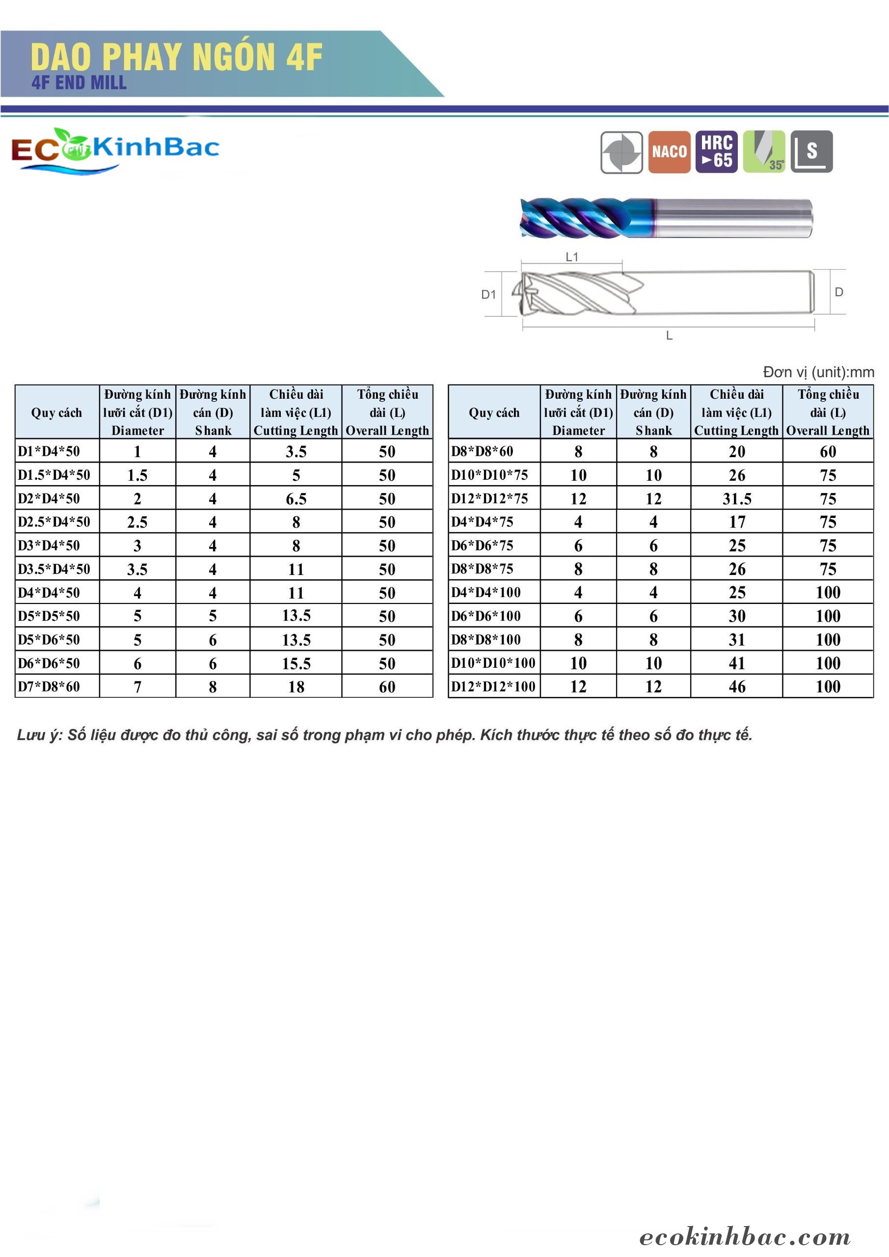 2. Mô tả dao phay ngón 65HRC