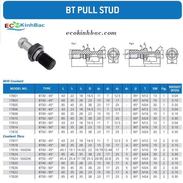 Đuôi chuột, đuôi rút, vít rút sử dụng cho bầu kẹp BT40