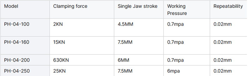 Điều chỉnh lực kẹp linh hoạt: Lực kẹp có thể được điều chỉnh thông qua bộ điều chỉnh áp suất, đảm bảo phù hợp với yêu cầu gia công cụ thể.