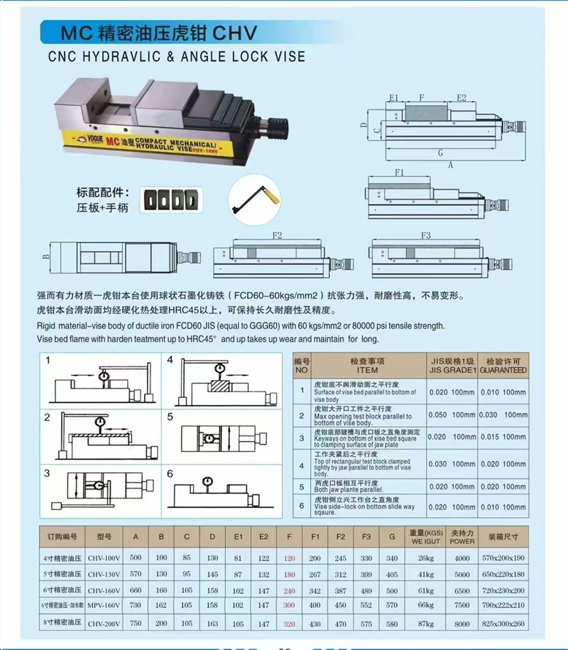 Ê-tô thủy lực **CHV-130V** là dòng sản phẩm kẹp chặt chất lượng cao, thiết kế nhỏ gọn và chắc chắn, phù hợp với các ứng dụng gia công cơ khí chính xác. Sản phẩm này cung cấp khả năng kẹp ổn định và mạnh mẽ, giúp đảm bảo an toàn và độ chính xác trong quá trình gia công, đặc biệt là khi sử dụng với các máy CNC hoặc trung tâm gia công.