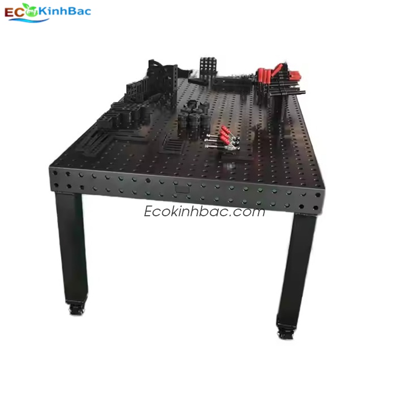 Đây có thể là bàn gá hàn 3D (3D welding table) bằng gang hoặc thép đúc — là loại bàn dùng trong gia công kim loại, đặc biệt phổ biến trong các xưởng hàn hoặc chế tạo cơ khí chính xác.