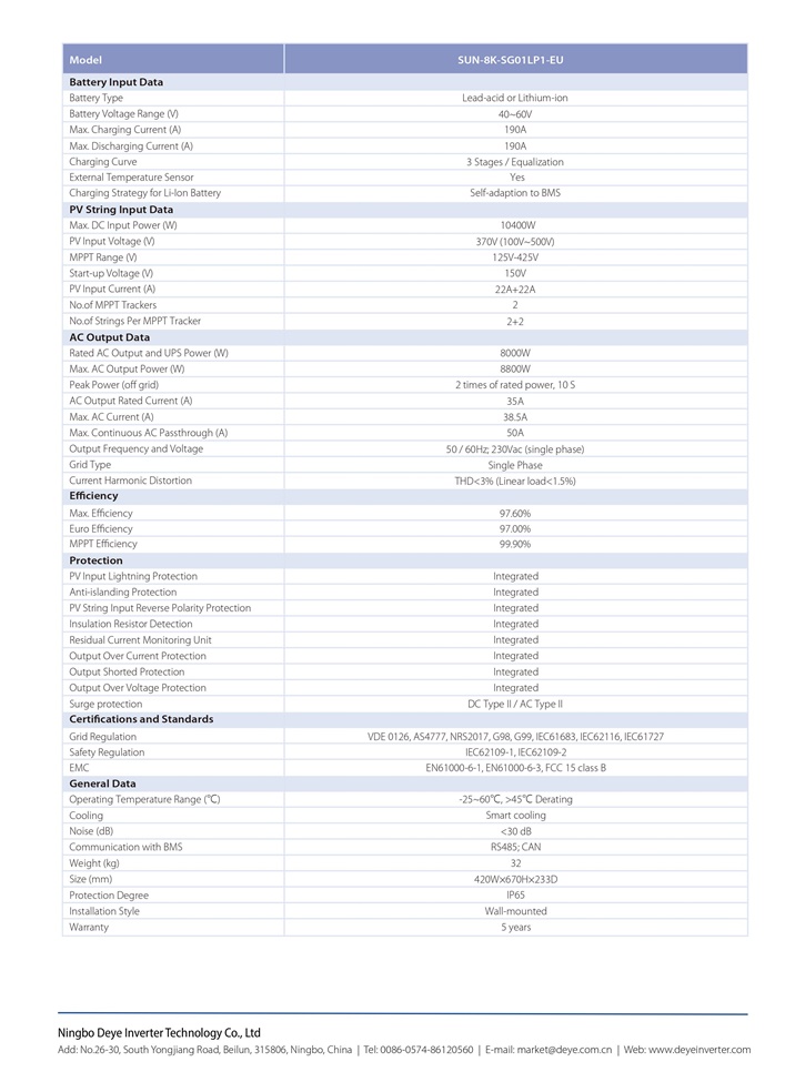 Tải về thông tin kỹ thuật Inverter Hybrid Deye 8kW