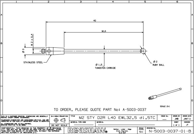 Kim đo A-5003-0037 Renishaw Đầu kim ruby M2