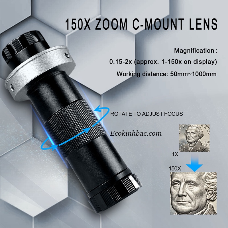 ✅ Phóng đại & zoom linh hoạt: Với ống kính C-Mount và zoom 150× (tùy model), kính có thể phóng đại rất cao — thuận tiện cho công việc sửa chữa, kiểm tra linh kiện nhỏ hoặc chi tiết vi mô.