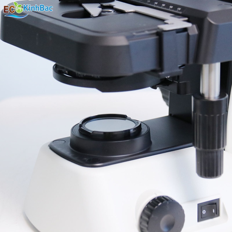 Ổ gắn vật kính dạng mâm xoay 360°, có 4 vị trí lắp vật kính.