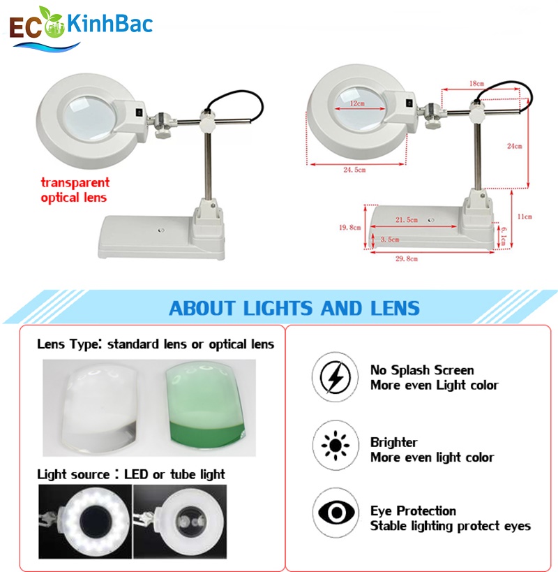- Tên sản phẩm: Kính lúp để bàn LT-86B 5X đèn LED (thấu kính phổ thông)