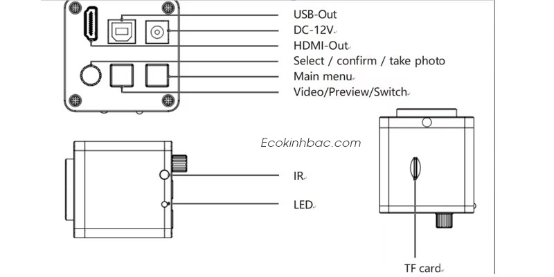 Ngõ ra: USB2.0, hình ảnh độ nét cao, thẻ nhớ TF,