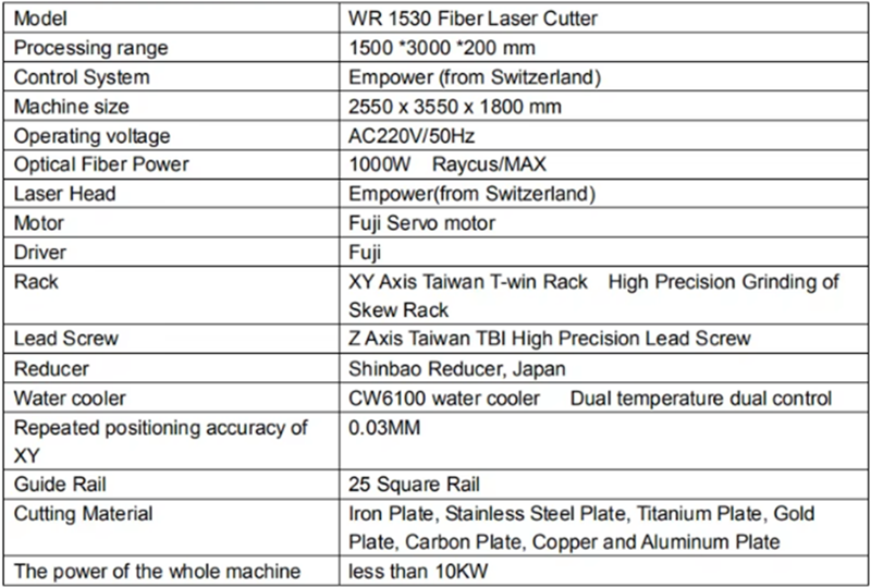 Công suất laser 500W / 1000W / 2000W / 3000W