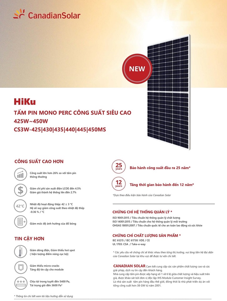 Canadian Solar 450W Hội tụ những công nghệ đỉnh cao