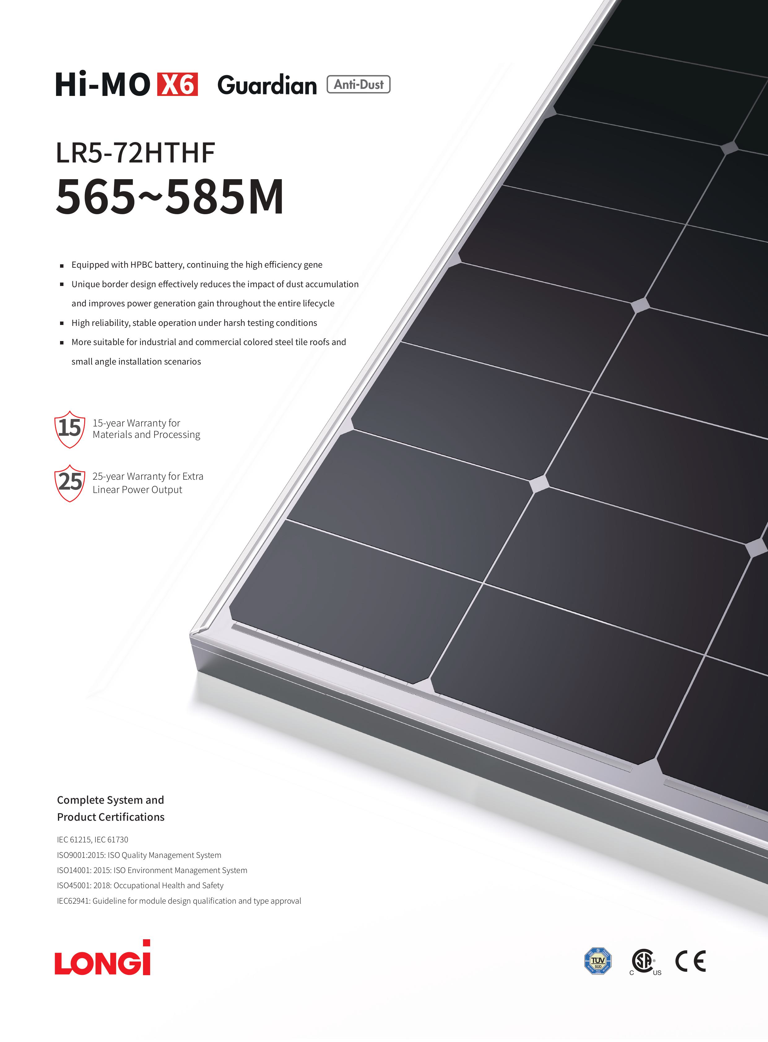 Tấm pin năng lượng mặt trời LONGi 580W thuộc dòng Hi-Mo x6 đến từ thương hiệu LONGi Solar.