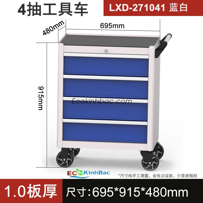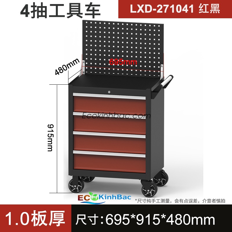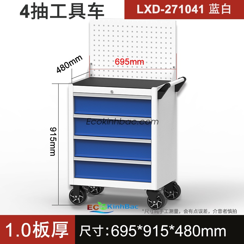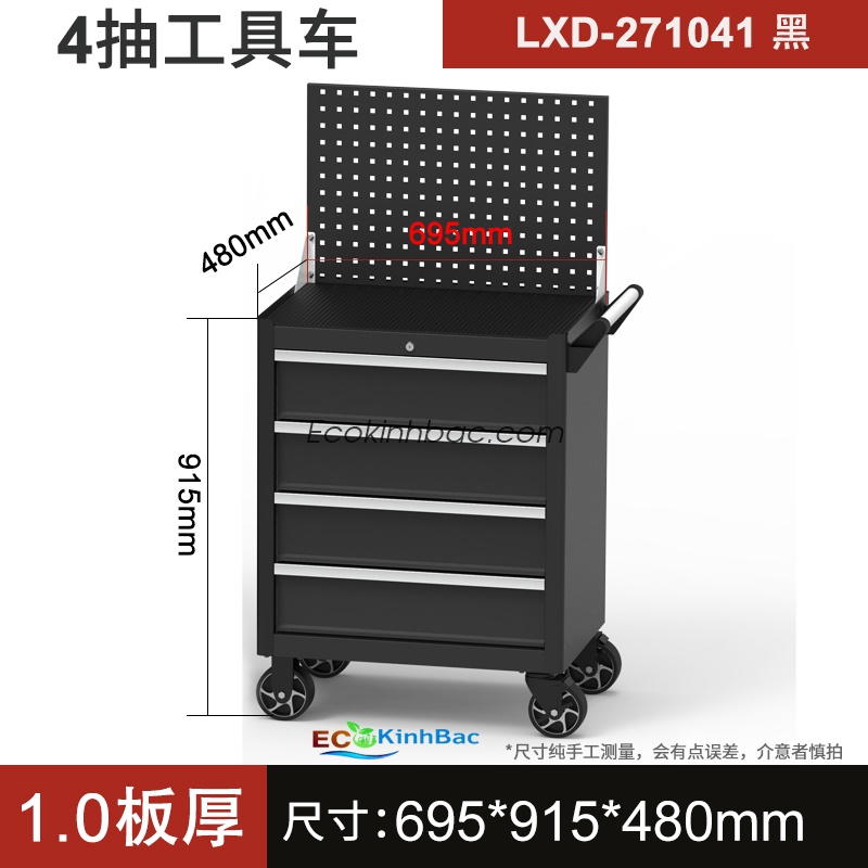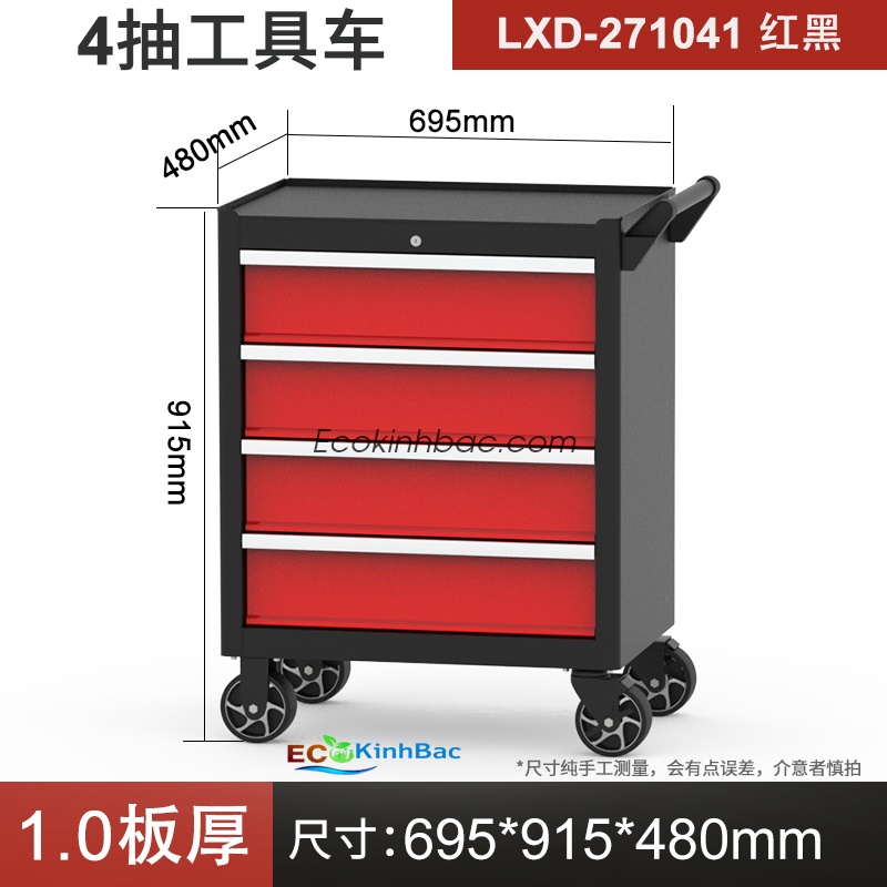 – Có 4 bánh xe (2 bánh xe dẫn hướng), dễ dàng kéo đồ nghề đến vị trí sửa chữa.